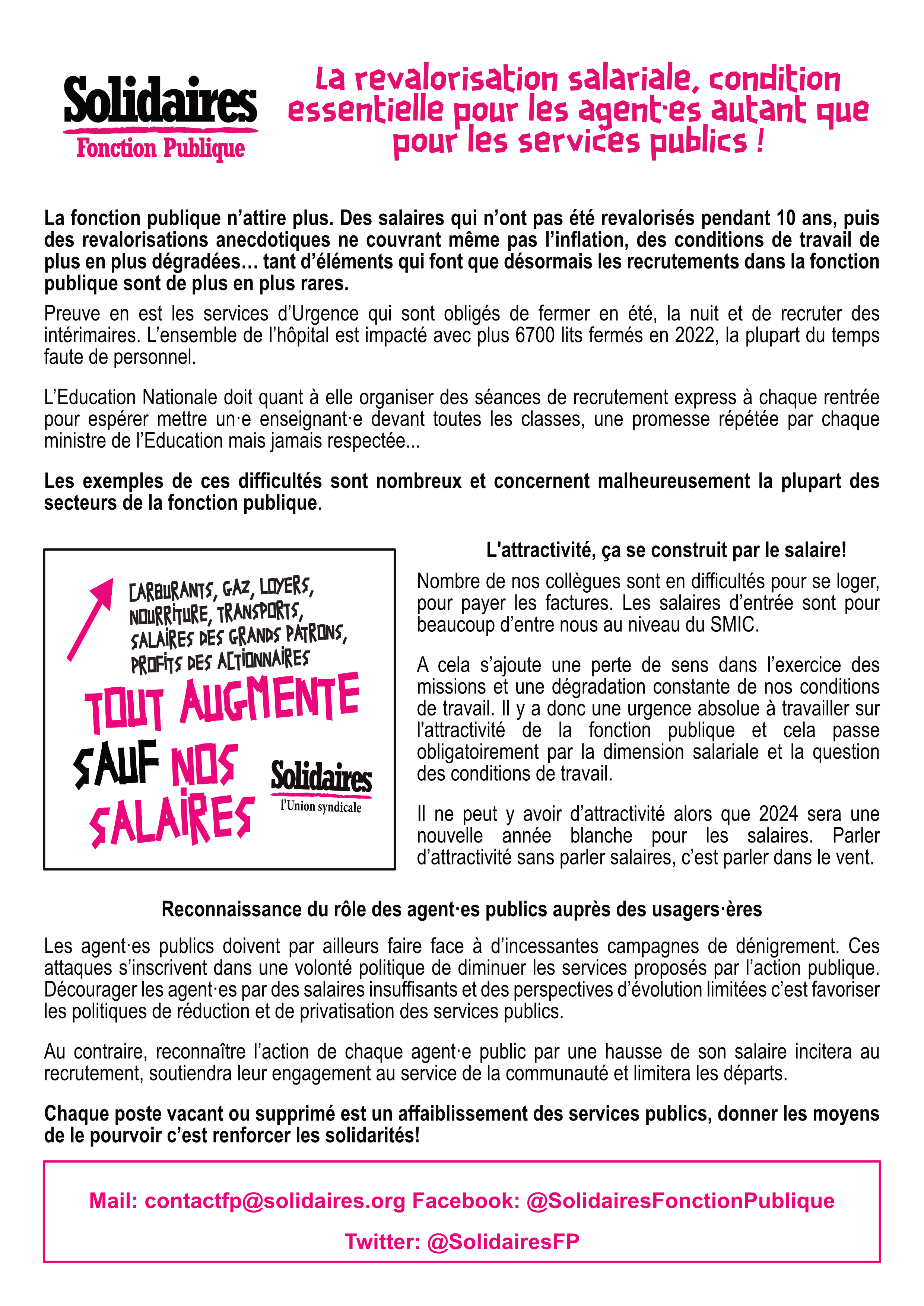 Il ne peut y avoir d’attractivité alors que 2024 sera une nouvelle année blanche pour les salaires. Parler d’attractivité sans parler salaires, c’est parler dans le vent.