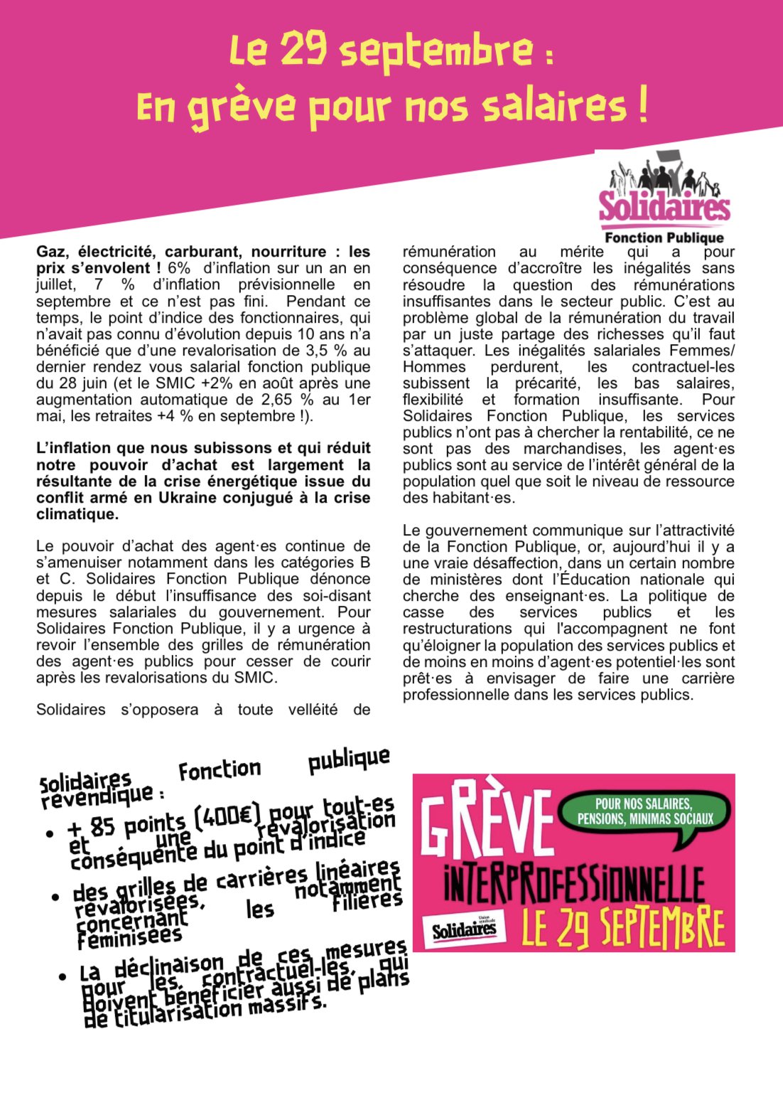 Solidaires Fonction publique revendique :