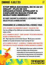 CP unitaire du 10 juillet 2024 : Stop méga-bassines, du 16 au 21 juillet : Plus de 120 organisations appellent à confluer en masse pour un moratoire immédiat ! – De Saint-Sauvant à la Rochelle, les rendez-vous et objectifs de la mobilisation.