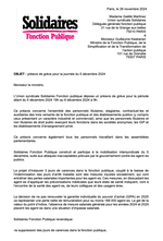 Répondant à la demande de l’ensemble des organisations syndicales représentatives de la Fonction publique, Guillaume Kasbarian ministre de la Fonction publique, de la Simplification et de la Transformation de l’action publique ̶ a été contraint de nous accorder une audience le jeudi 7 novembre dernier...