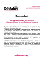 Solidaires apporte son soutien à l’ensemble de la population de Mayotte