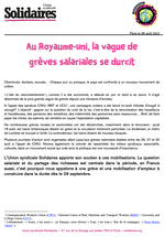 Au Royaume-Uni, la vague de grèves salariales se durcit. L’Union syndicale Solidaires apporte son soutien à ces mobilisations.
