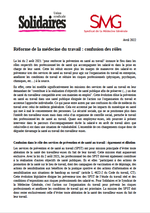 Communiqué commun SMG et Union syndicale Solidaires "Réforme de la médecine du travail : confusion des rôles"