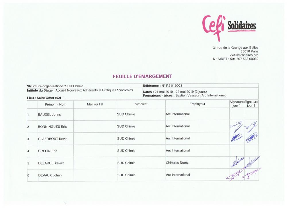 - Organisme : SUD Chimie