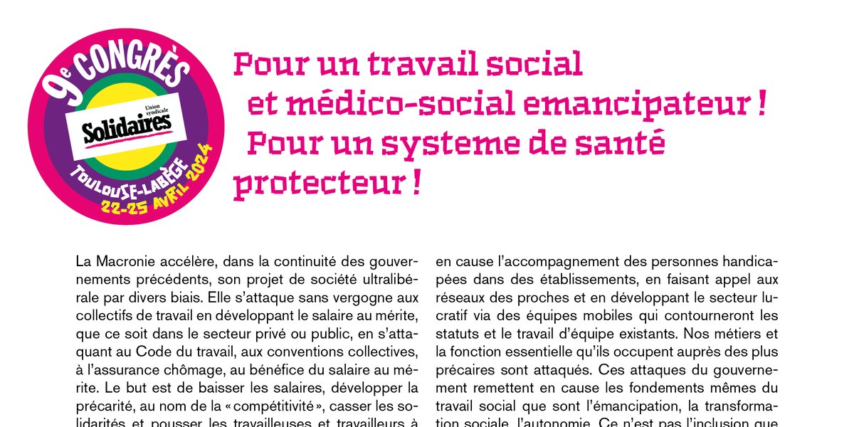Dans le même temps, nous assistons à l’effondrement de l’hôpital public et au recul de l’accès aux soins sur tout le territoire en métropole et dans les territoires ultra-marins ; les services et établissements sociaux et médico-sociaux (Protection de l’Enfance, accompagnement des personnes en situation de migration, en situation de handicap, en situation de dépendance…) n’ont plus les moyens de fonctionner correctement. Plutôt que de renforcer les moyens de ces établissements au nom de l’inclusion, le gouvernement remet en cause l’accompagnement des personnes handicapées dans des établissements, en faisant appel aux réseaux des proches et en développant le secteur lucratif via des équipes mobiles qui contourneront les statuts et le travail d’équipe existants. Nos métiers et la fonction essentielle qu’ils occupent auprès des plus précaires sont attaqués. Ces attaques du gouvernement remettent en cause les fondements mêmes du travail social que sont l’émancipation, la transformation sociale, l’autonomie. Ce n’est pas l’inclusion que développe le gouvernement, c’est l’exclusion des politiques sociales d’une grande partie de la population la plus vulnérable !