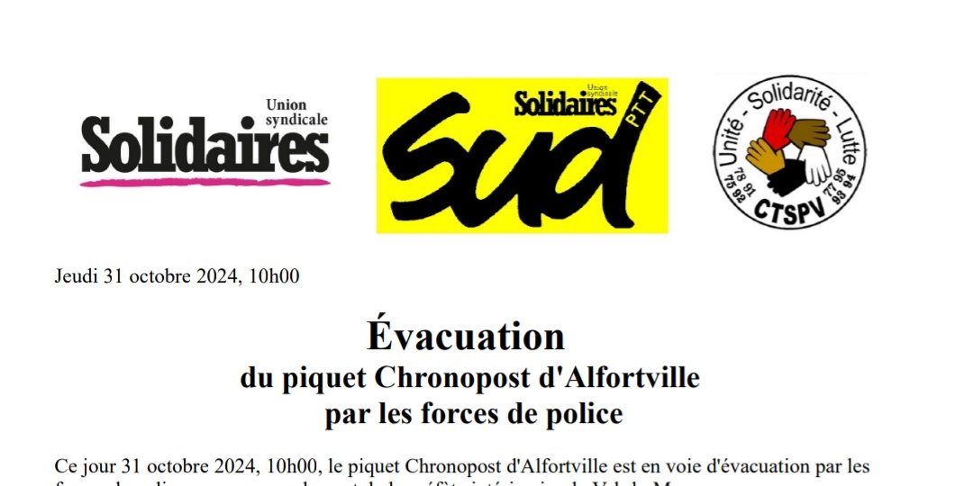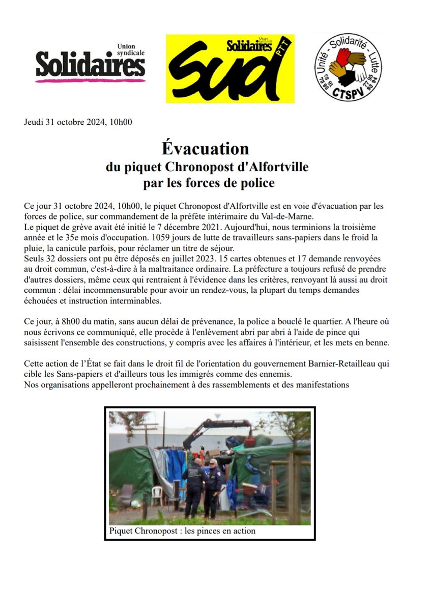 Évacuation du piquet de Chronopost de Alfortville par les forces de polices