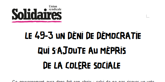 Ce 49-3 dans ce contexte de colère sociale et de mobilisations massives, ajoute de l’huile sur le feu. Le gouvernement devra en assumer la responsabilité.