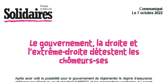 Pour l’Union syndicale Solidaires, ce qu’il nous faut c’est une continuité du salaire entre deux emplois, ce sont les 32h sans perte de salaire, un recrutement massif dans les services publics, une véritable bifurcation écologique et l’augmentation générale des salaires !