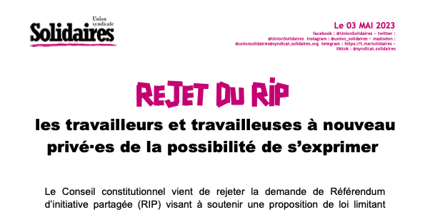 Rejet du RIP : les travailleurs et travailleuses à nouveau privé·es de la possibilité de s’exprimer