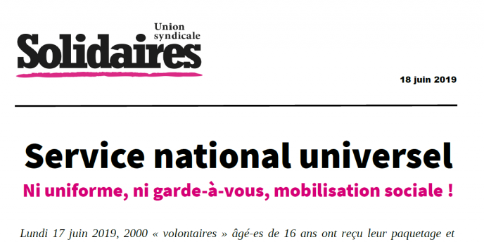 Le SNU n’est finalement qu’une nouvelle illustration des multiples tentatives d’affaiblir tous les outils et espaces de mobilisation citoyenne, en éduquant à la soumission et à la peur.