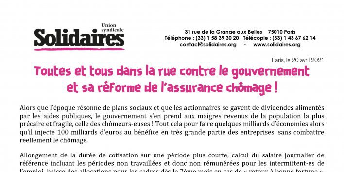 Allongement de la durée de cotisation sur une période plus courte, calcul du salaire journalier de référence incluant les périodes non travaillées et donc non rémunérées pour les intermittent-es de l’emploi, baisse des allocations pour les cadres dès le 7ème mois en cas de « retour à bonne fortune », taxation des CDD d’un mois repoussée après les élections présidentielles…. Il n’y a que des régressions et mensonges imposés par le gouvernement afin de faire quelques milliards d’économies … en les prenant dans les poches des travailleurs-euses !