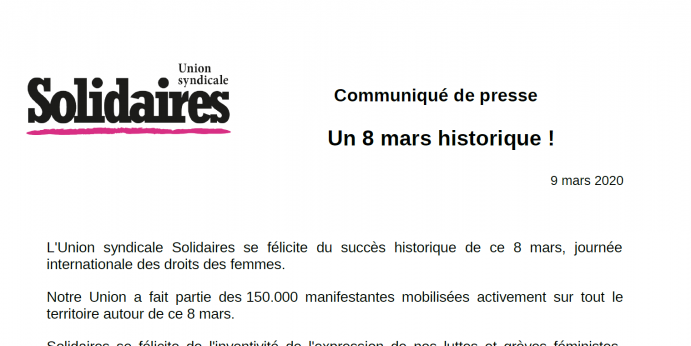[Voir également en pj, le communiqué unitaire "8 mars : marche des Grandes Gagnantes"]