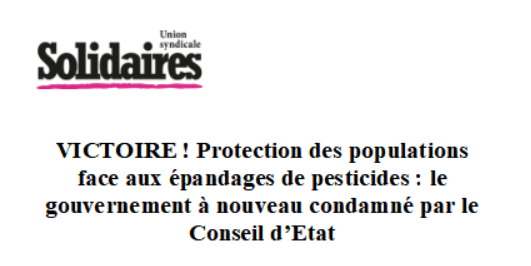 Depuis des années l’Union syndicale Solidaires et plusieurs associations de défense de l’environnement et des victimes des pesticides réunies dans un collectif, alertent sur les carences de l’Etat en matière de protection des riverains et travailleurs soumis aux épandages de pesticides. Cette pression a abouti, lors des Etats Généraux de l’Alimentation de 2017, à l’adoption de l’article 83 qui introduit l’obligation de prendre des mesures de sécurité des riverains et l’adoption de chartes d’engagements.
