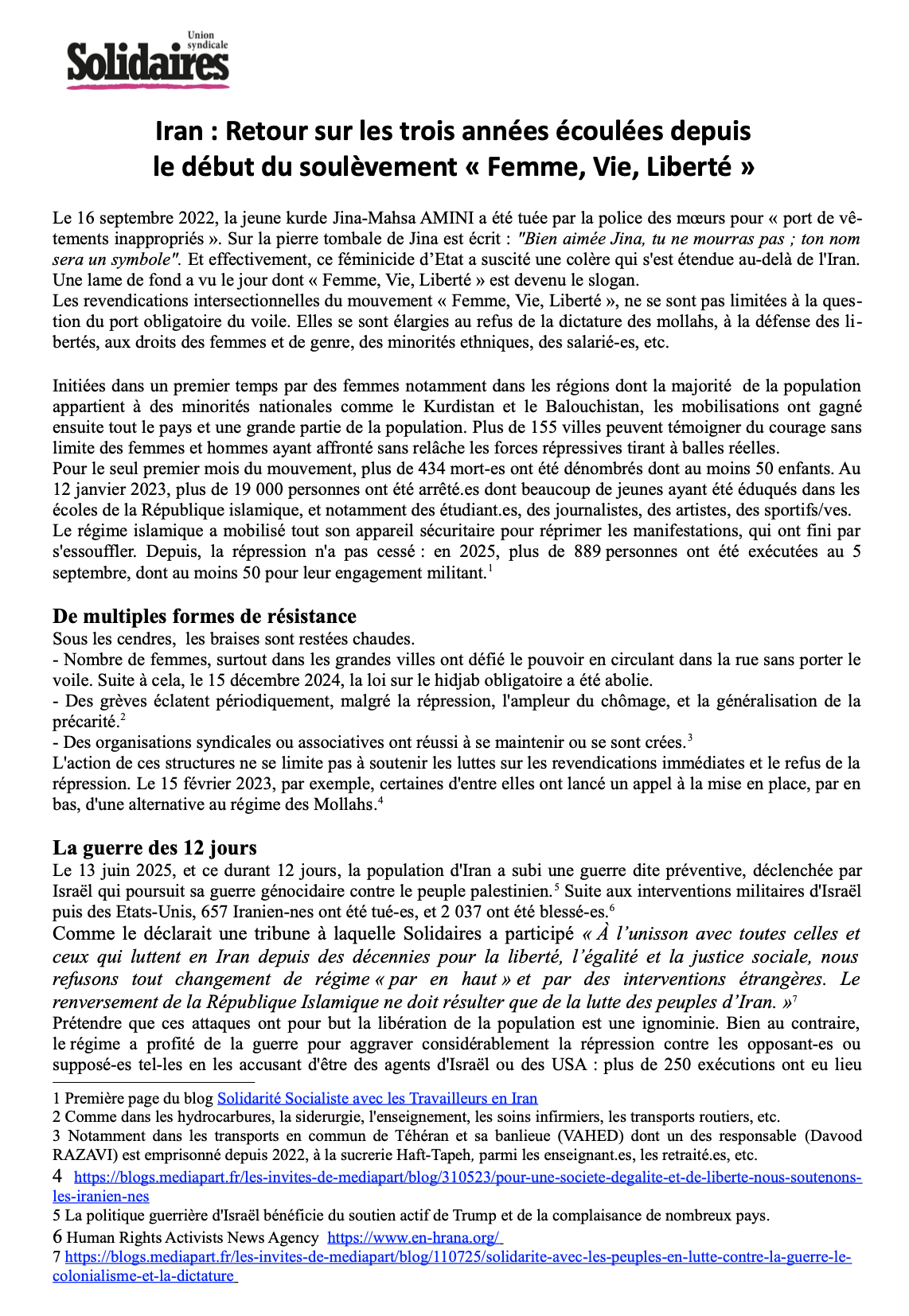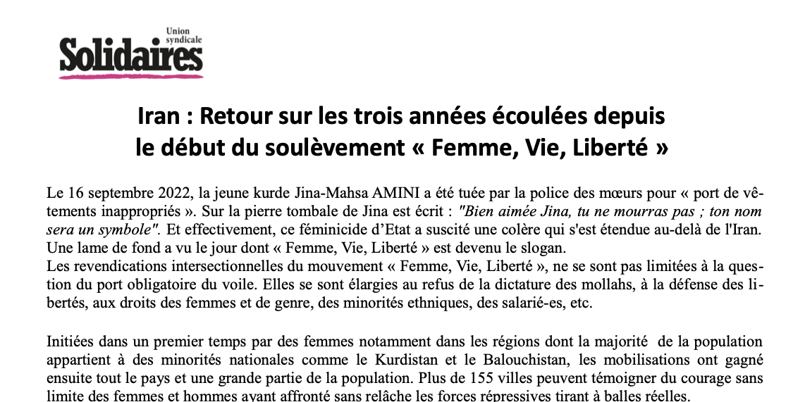 Iran : Retour sur les trois années écoulées depuis le début du soulèvement « Femme, Vie, Liberté »