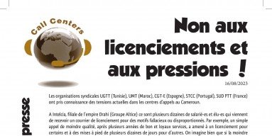 Les organisations syndicales UGTT (Tunisie), UMT (Maroc), CGT (Espagne), STCC (Portugal), SUD PTT (France) ont pris connaissance des tensions actuelles dans les centres d’appels au Cameroun.