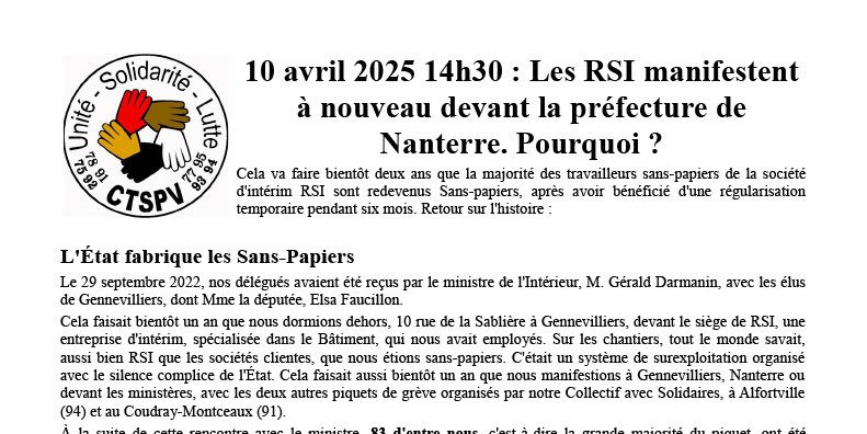 10 avril 2025 14h30 : Les RSI manifestent à nouveau devant la préfecture de Nanterre. Pourquoi ?