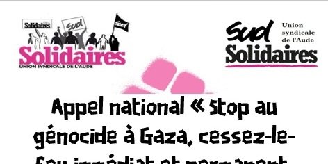 Rassemblement, avec lectures sur la situation et sur l'actualité en Palestine, avec notamment les violences faites aux femmes et aux enfants en cette période génocidaire, ainsi qu'un paragraphe sur "l’atmosphère " guerrière qu’insufflent progressivement les autorités macronistes.