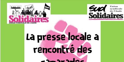 Grévistes de SUD Education et SUD Poste à Carcassonne : article du journal l'Indépendant du 28 mars 2023