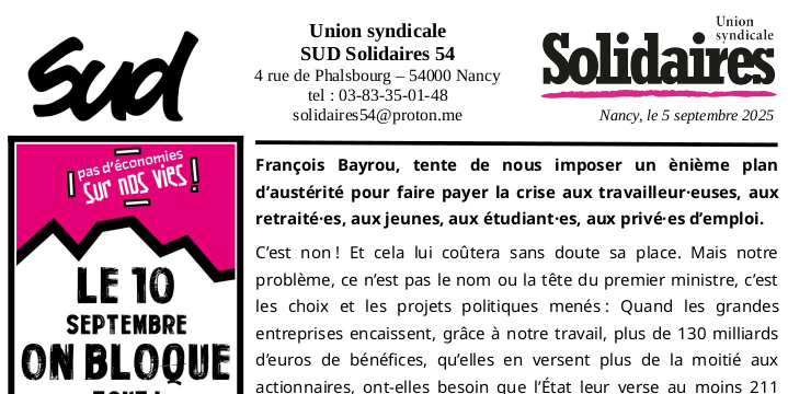 ATTENTION : Changement de RV : le départ de la manifestation du 18 septembre se fera place Saint-Epvre