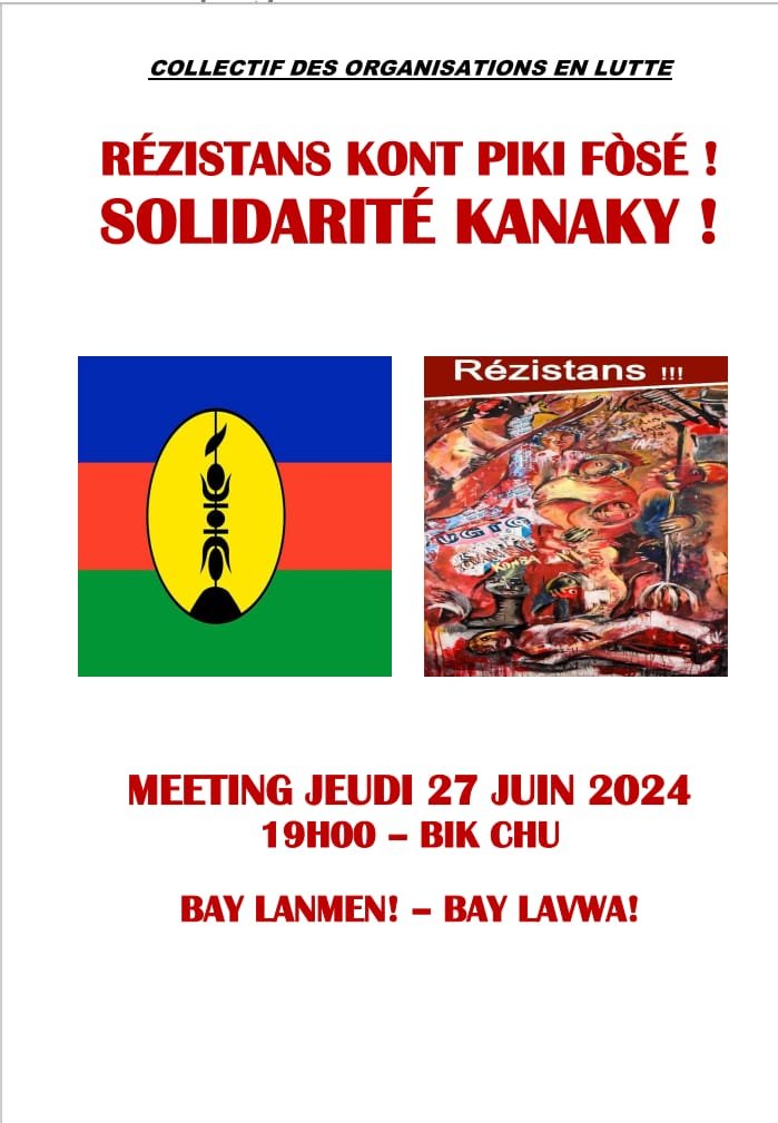 - Appellent à la mobilisation tous leurs militants en exigence de la libération immédiate et sans conditions de tous les militant-e-s et prisonnier-e-s politiques kanaks