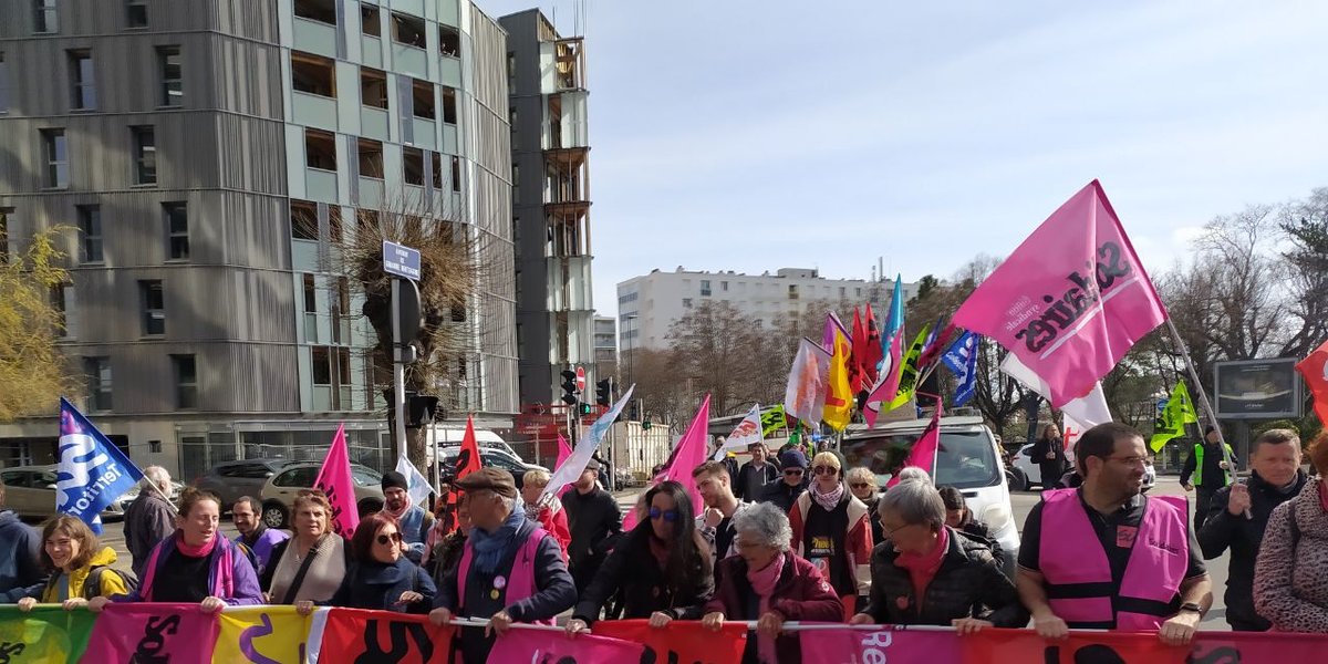 Après avoir envahi le hall de la gare, des syndicalistes ont investi les voies pour bloquer un train, avant de partir en manifestation vers la préfecture. Sur les marches de la préfecture, l'intersyndicale rejoint par d'autres secteurs en lutte, a pris la parole pour rappeler la détermination unitaire à aller jusqu'au retrait, et indiquer les prochains rendez-vous convergeant vers la journée forte d'action du jeudi 23 mars en grève et en manif à 10h place du 1er Mai.