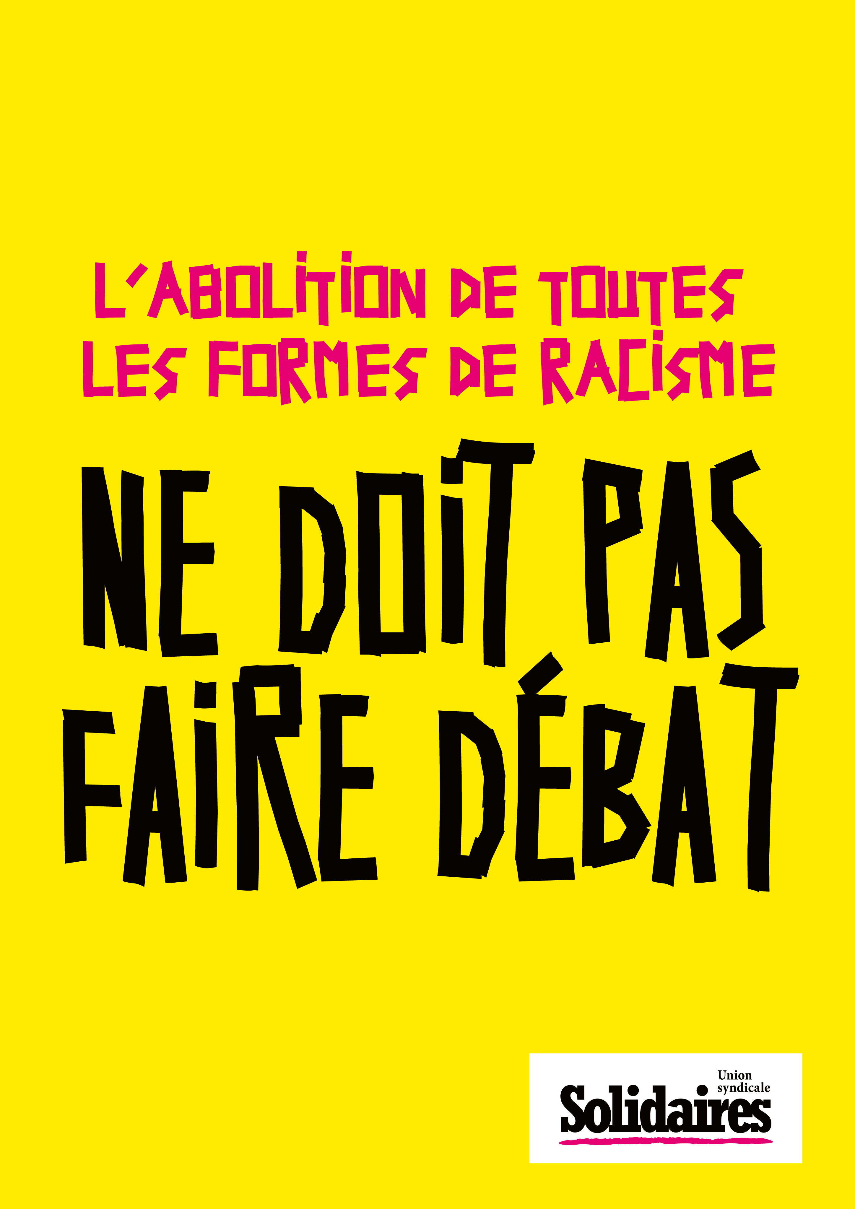 Cette campagne comprend des affiches et des tracts téléchargeables sur cette page : Racisme, antisémitisme, xénophobie au travail : c’est non !