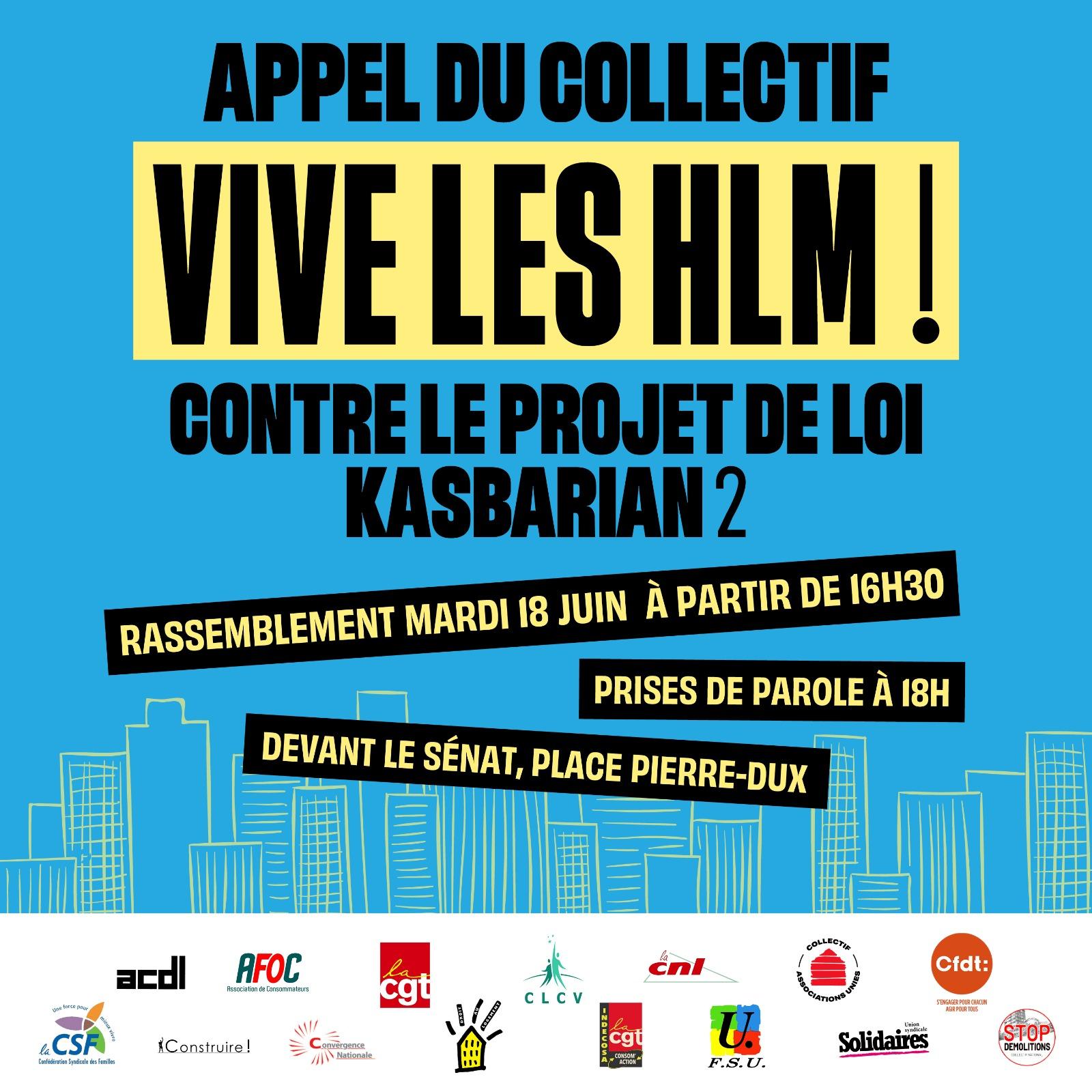 Nos associations et collectifs se sont réunis au sein du collectif « Vive les HLM » pour dénoncer le projet de loi Kasbarian 2 “relatif au développement de l’offre de logements abordables”, qui sera examiné en séance au Sénat le 18 juin.