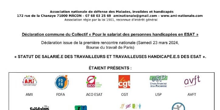 Déclaration commune du Collectif « Pour le salariat des personnes handicapées en ESAT »
