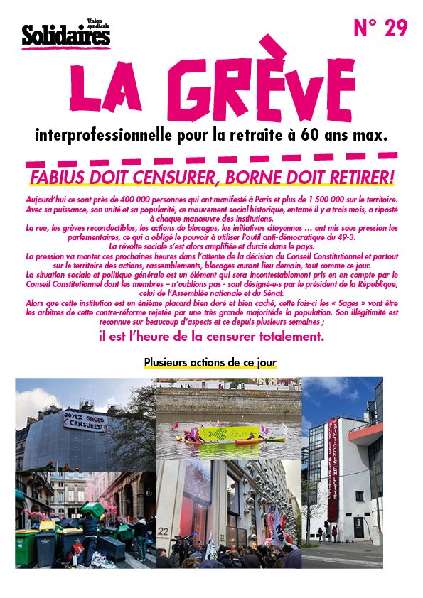 La pression va monter ces prochaines heures dans l’attente de la décision du Conseil Constitutionnel et partout sur le territoire des actions, rassemblements, blocages, auront lieu demain, comme toutes celles qu’on a pu voir aujourd’hui.