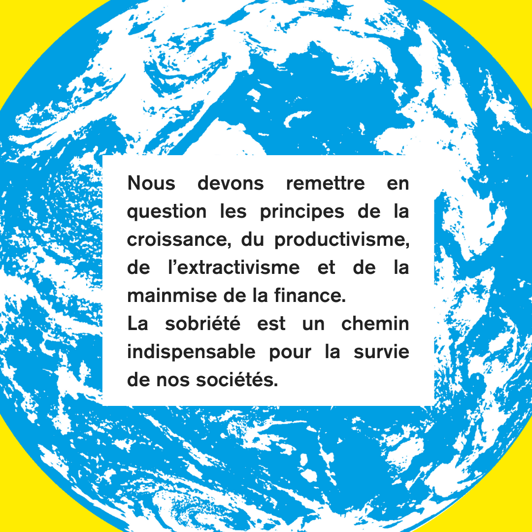 Nous devons remettre en question les principes de la croissance, du productivisme, de l’extractivisme et de la mainmise de la finance. La sobriété est un chemin indispensable pour la survie de nos sociétés.