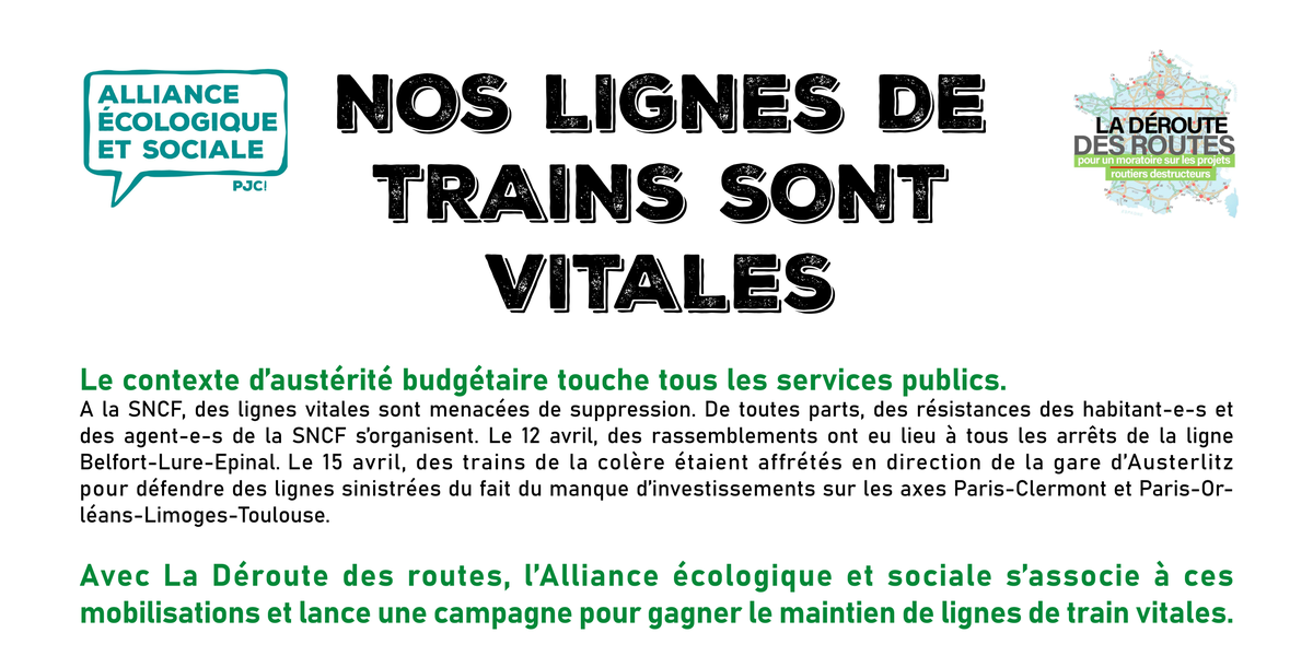 Nos lignes de train sont vitales - Tract de l'Alliance écologique et sociale et de la Déroute des routes