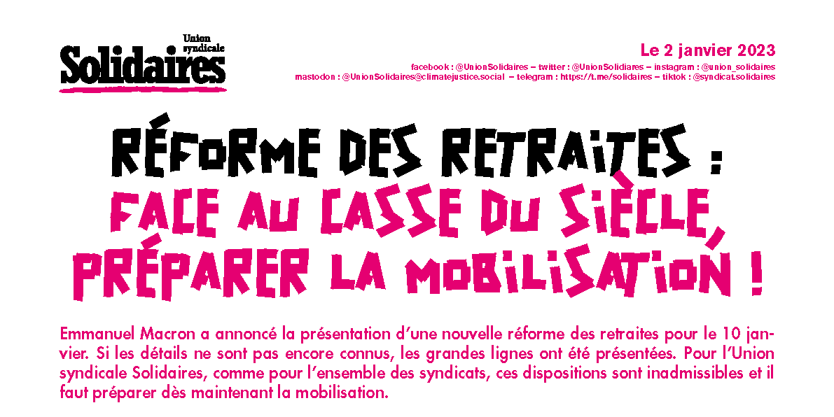 Pour l’Union syndicale Solidaires, comme pour l’ensemble des syndicats, ces dispositions sont inadmissibles et il faut préparer dès maintenant la mobilisation.