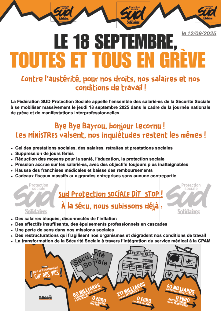 18 SEPTEMBRE TOUTES ET TOUS EN GREVE