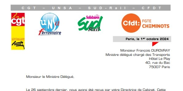 Les fédérations cheminotes CGT - UNSA - SUD-Rail - CFDT exigent de rencontrer à brève échéance le ministre des Transports pour aborder l’ensemble de nos exigences sociales.