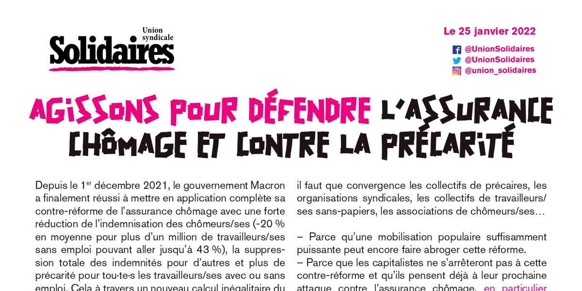 Agissons pour défendre l'assurance chômage et lutter contre la précarité