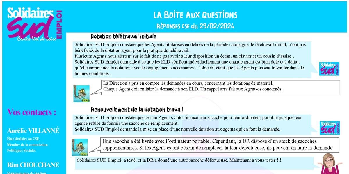 Boite aux questions réponses - CSE du 29/02/2024 - Région Centre