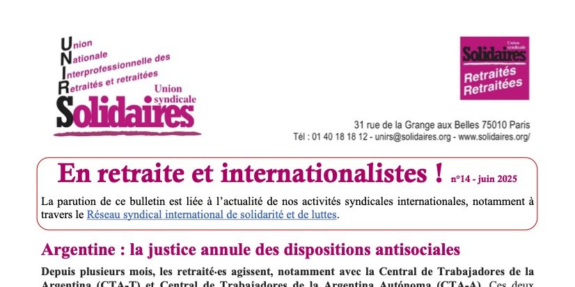 Voici le numéro 14 du bulletin de l'UNIRS En retraite et internationalistes ! Au sommaire :