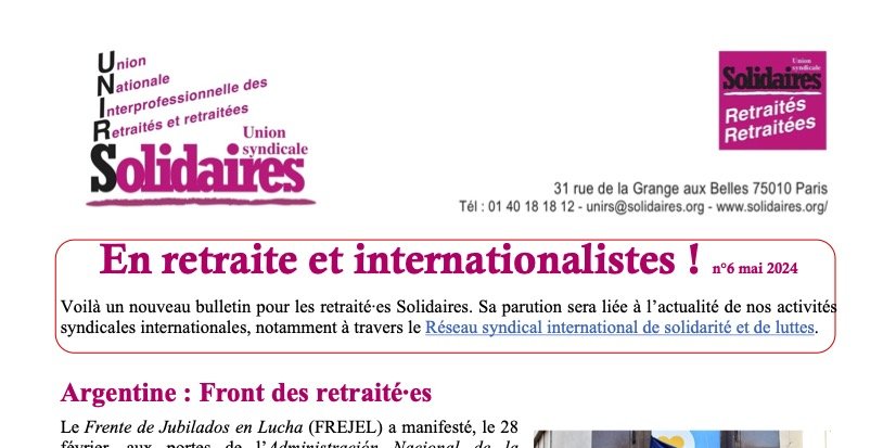 Et voici le sixième bulletin lié à l’actualité de nos activités syndicales internationales, notamment à travers le Réseau syndical international de solidarité et de luttes .