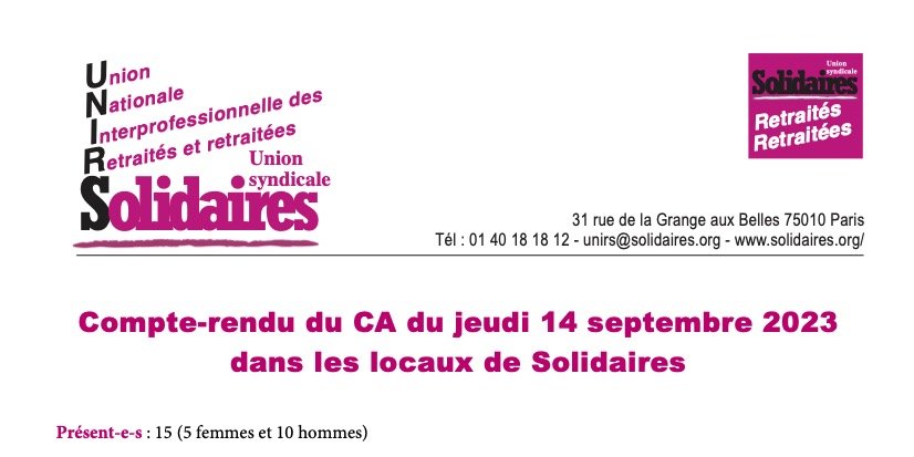 Voici le compte-rendu de la réunion du CA qui s'est tenue le 14 septembre 2023.