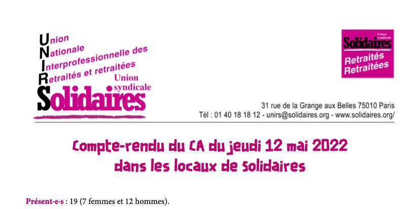 Compte-rendu du CA de l'UNIRS du 12 mai 2022