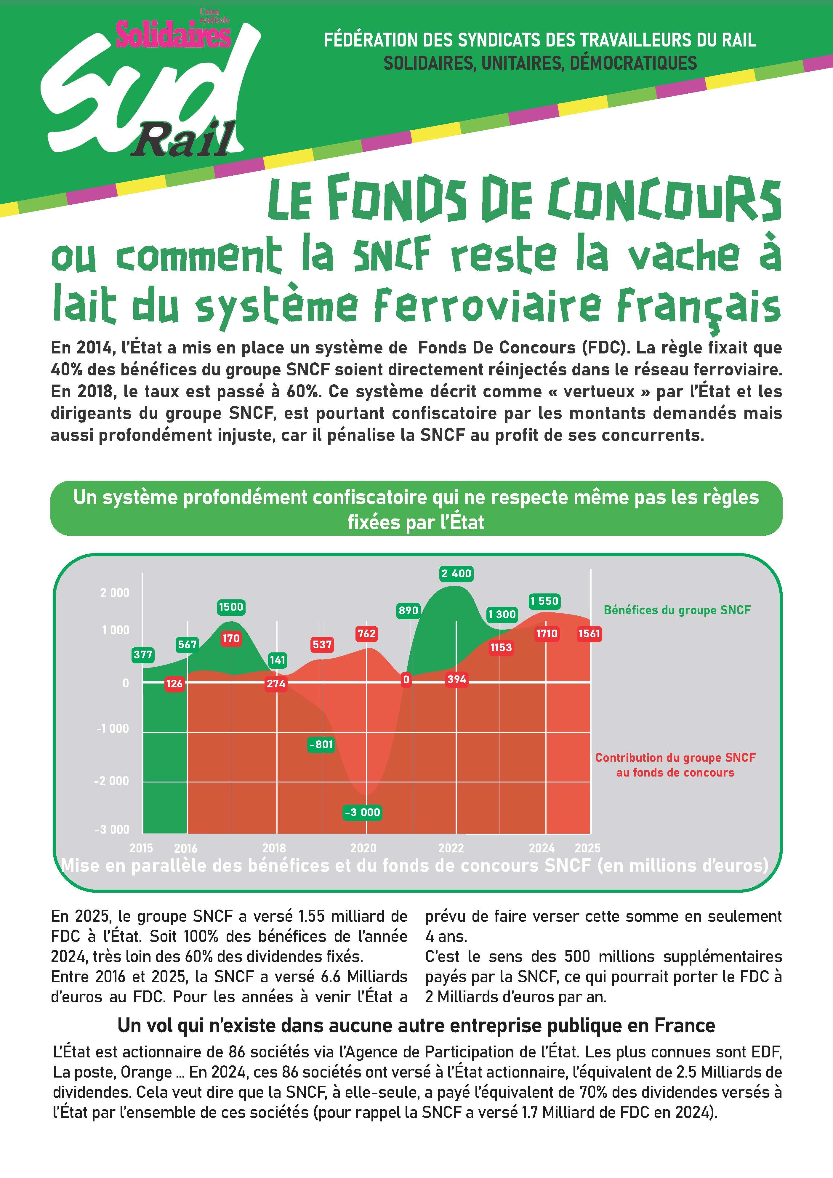 En 2014, l’État a mis en place un système de Fonds De Concours (FDC). La règle fixait que 40% des bénéfices du groupe SNCF soient directement réinjectés dans le réseau ferroviaire.