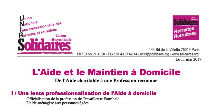 II /Analyse du secteur de la profession en 2017 : modes d’intervention, opérateurs, structuration juridique, statuts des salarié·e·s, problématiques des Intervenants. La grande précarité de la profession. Les besoins et demandes des bénéficiaires de l'Aide à Domicile. Le financement de l'aide à l'autonomie…