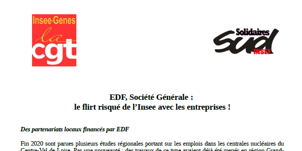 La CGT Insee-Genes et SUD Insee militent pour l’indépendance de l’Insee ; de tels projets ne peuvent que nuire à l’impartialité, l’objectivité et à la réputation des travaux de l’Institut.