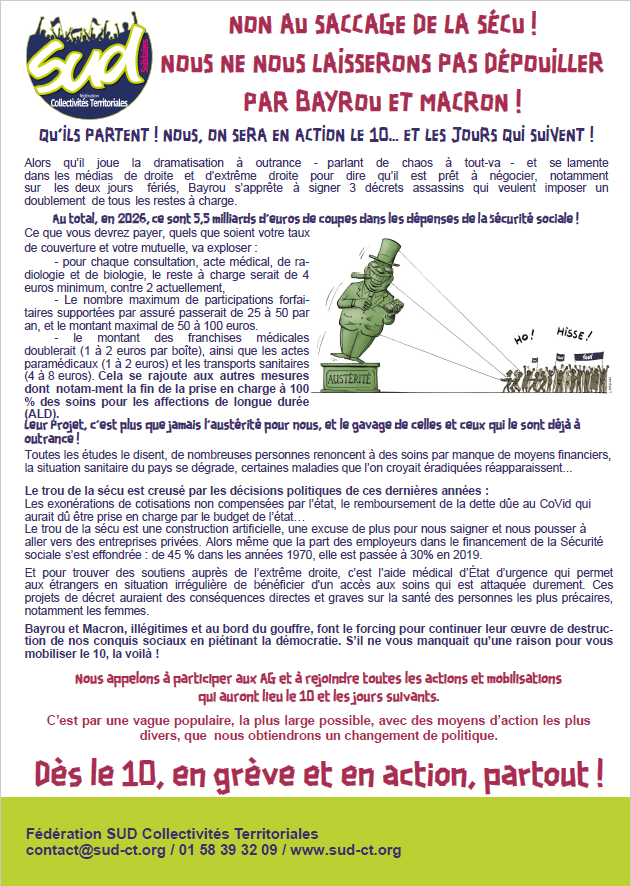 Alors qu’il joue la dramatisation à outrance - parlant de chaos à tout-va - et se lamente dans les médias de droite et d’extrême droite pour dire qu’il est prêt à négocier, notamment sur les deux jours fériés, Bayrou s’apprête à signer 3 décrets assassins qui veulent imposer un doublement de tous les restes à charge.