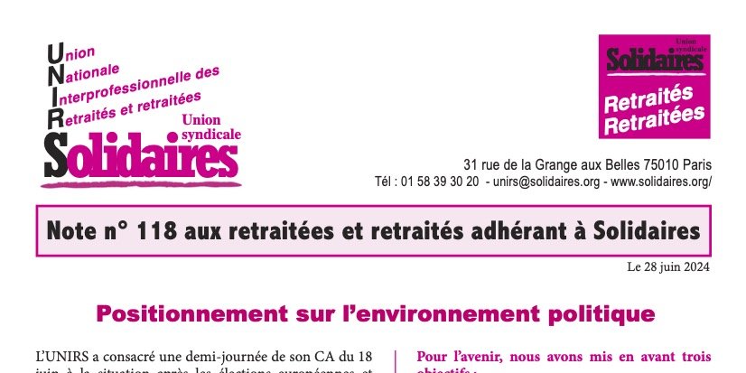 En conclusion, nous devons nous préparer à affronter le « monde de la finance » qui va mobiliser toutes ses forces si le programme du Nouveau Front Populaire, même réformiste, arrive au pouvoir. Nous nous rappelons 1981, la fuite des capitaux, les trois dévaluations, … qui ont réussi à imposer un tournant politique de la gauche et l’austérité qui a semé le désespoir et alimenté la montée du RN. Dans le rapport de forces, les actions syndicales doivent peser, et les retraité·es y prendront toute leur place.