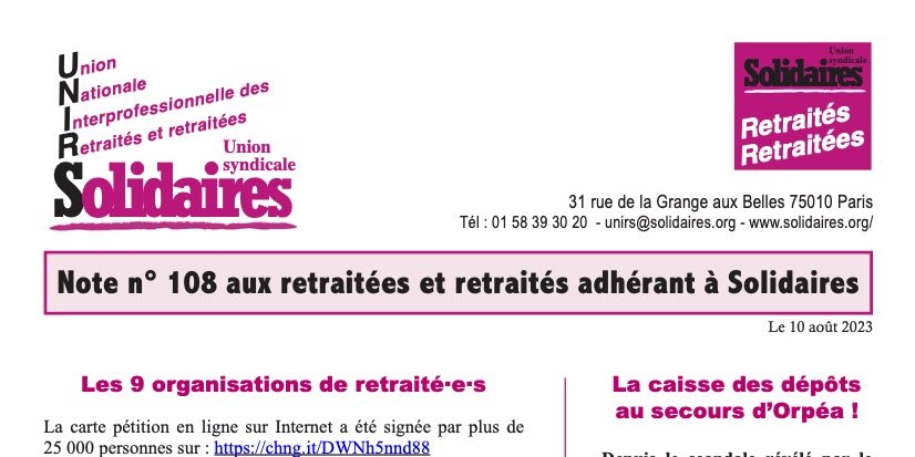 Si ce n’est pas encore fait, signez cette pétition. Et en tous les cas, faites-la signer. Les 9 organisations de retraités ont besoin d’un soutien massif pour exiger de suite une augmentation de 10 % des pensions, à valoir sur la perte de pouvoir d’achat de ces dernières années.