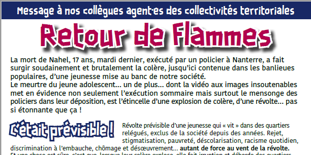 Pour la Fédération SUD Collectivités Territoriales, il nous appartient, à toutes et tous collectivement, de nous battre pour qu’il y ait un lendemain politique à cette révolte et à cette souffrance qui s’expriment si fortement.