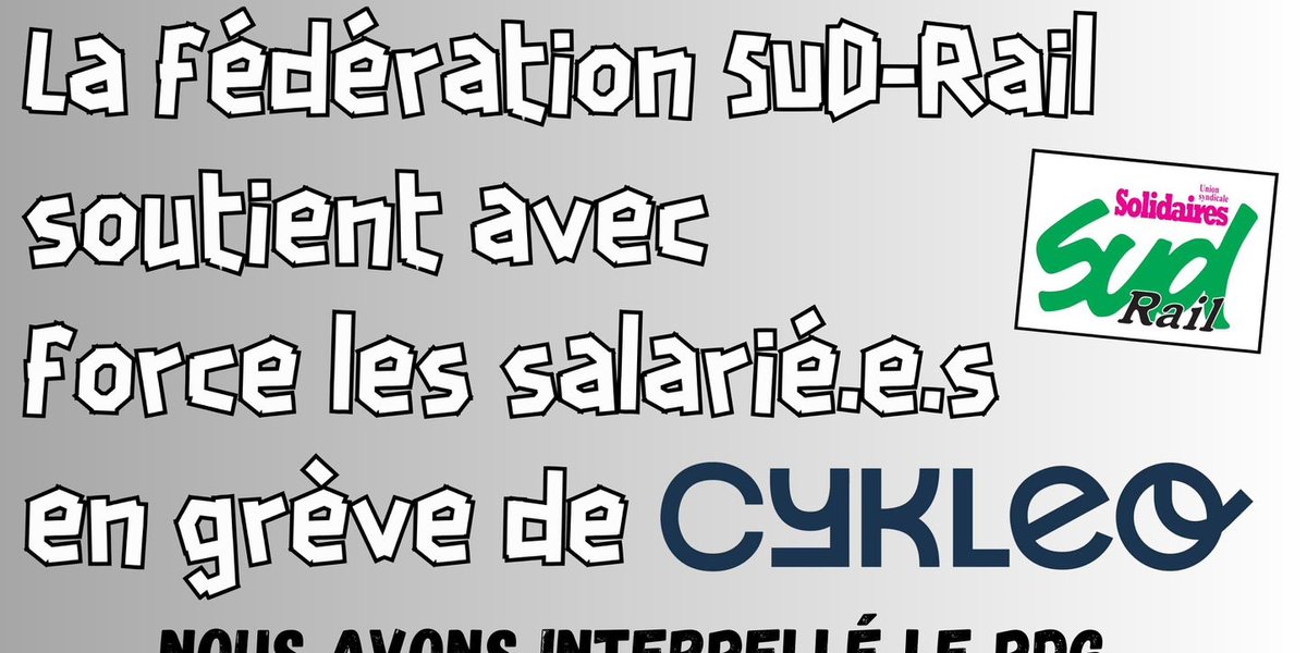 Courrier de la fédération SUD-Rail au PDG du Groupe SNCF en soutien aux salarié·es de la filiale Cykleo en grève depuis le 13 novembre.