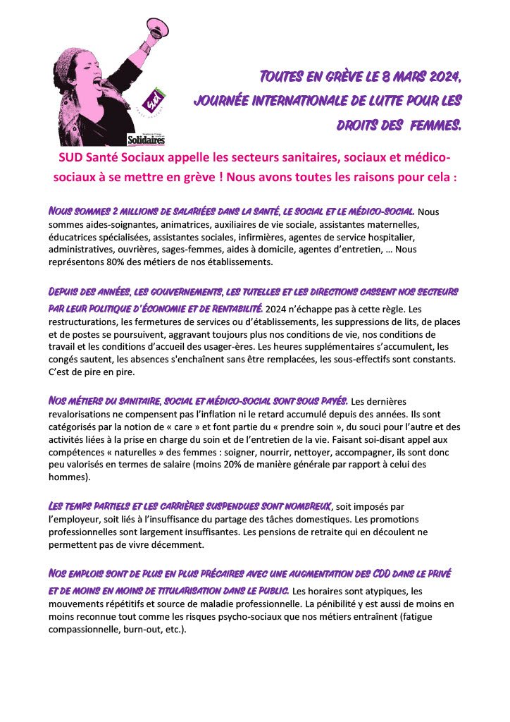 Toutes en grève le 8 mars 2024, journée internationale de lutte pour les droits des femmes.
