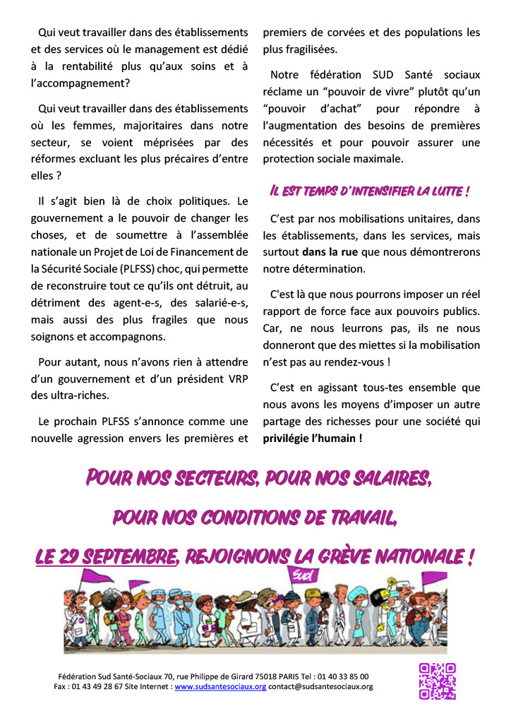 Pour autant, nous n’avons rien à attendre d’un gouvernement et d’un président VRP des ultra-riches. Le prochain PLFSS s’annonce comme une nouvelle agression envers les premières et premiers de corvées et des populations les plus fragilisées.